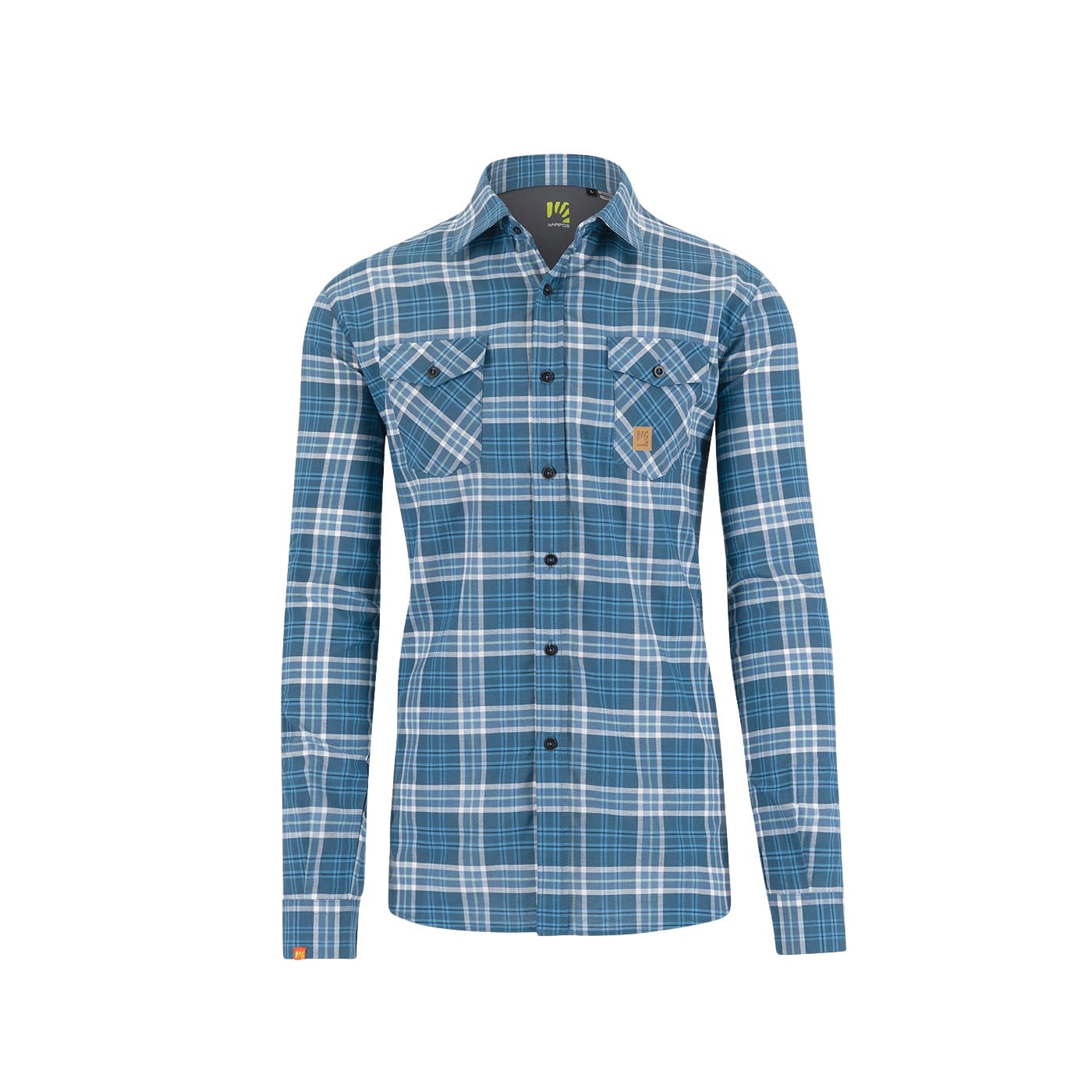 - Tasche applicate sul petto con pattina e chiusura a bottone.
