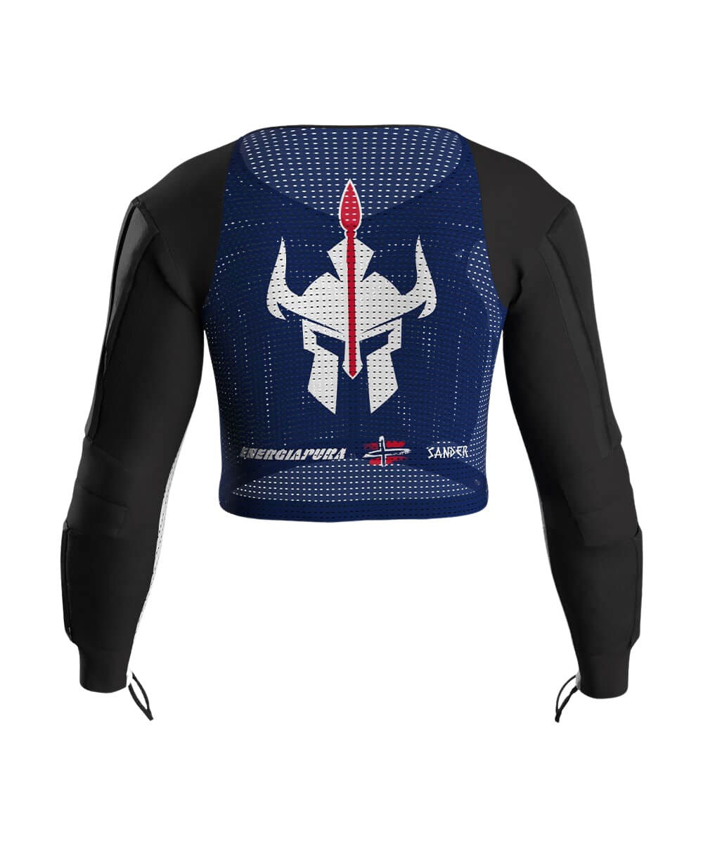 Maglia bielastica con materiale espanso ad alta assorbenza durto ed esterno in pvc per maggiore scorrimento nellimpatto con i pali, taglio ergonomico, indicata per chi pratica lo sci agonistico.
